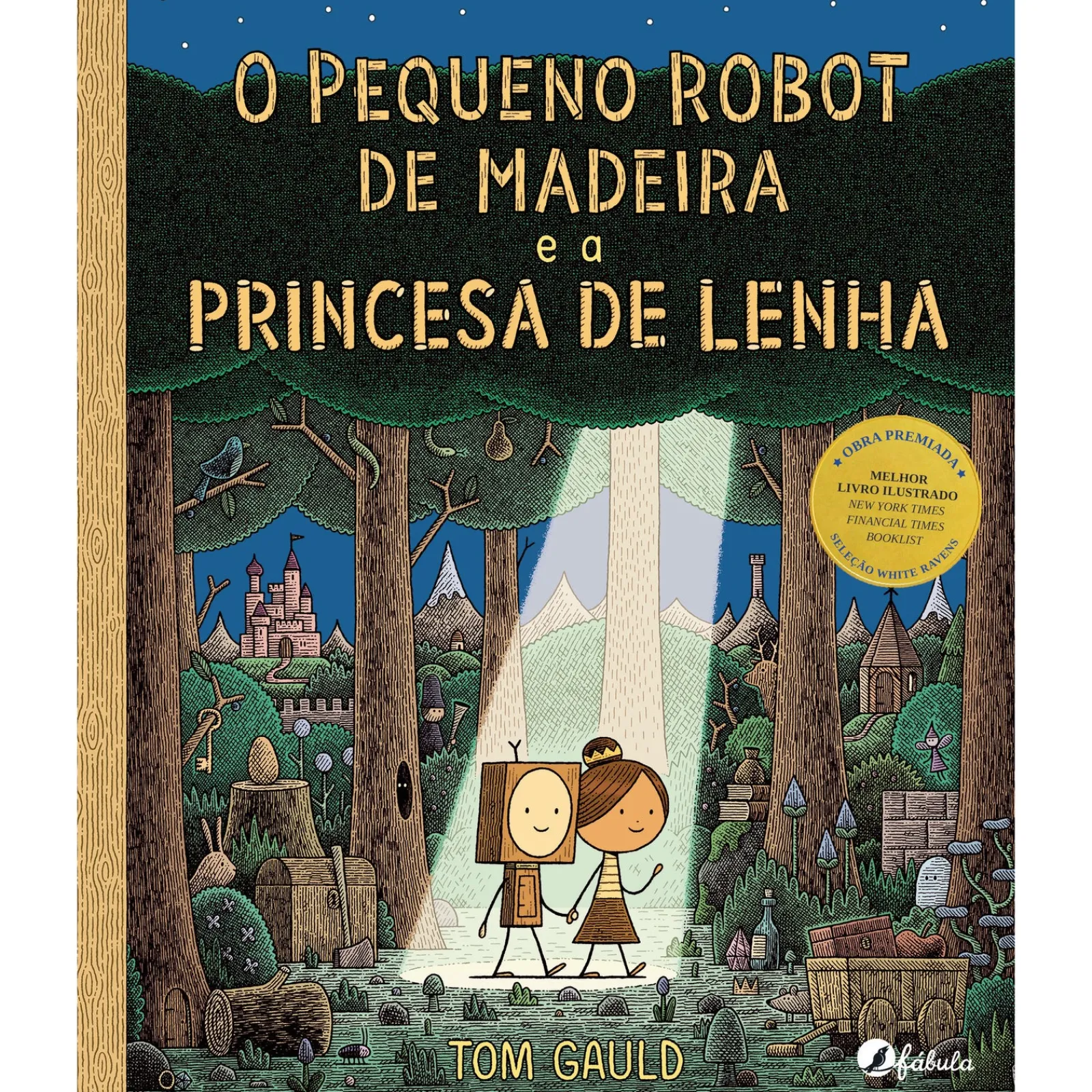 Num reino distante, há muito que o rei e a rainha desejavam ser pais. Então, com a ajuda de uma inventora habilidosa e de uma bruxa sábia, receberam com alegria não um, mas dois filhos: um pequeno robot de madeira e uma princesa feita de um toro de lenha. Os dois irmãos eram muito amigos e viviam felizes no castelo. Até que, um dia, a princesa desaparece e o seu irmão vai lançar-se numa aventura para a trazer de volta a casa. Mas ele próprio vai ficar em grande perigo. Haverá forma de voltarem para junto dos seus pais?Tom Gauld, um autor talentoso e premiado, conseguiu criar um conto de fadas intemporal, moderno e clássico ao mesmo tempo. com personagens inesquecíveis, conta uma história cheia de coragem, magia e fantasia. Melhor livro ilustrado: New York Times, Financial Times, Booklist. Seleção White Ravens.