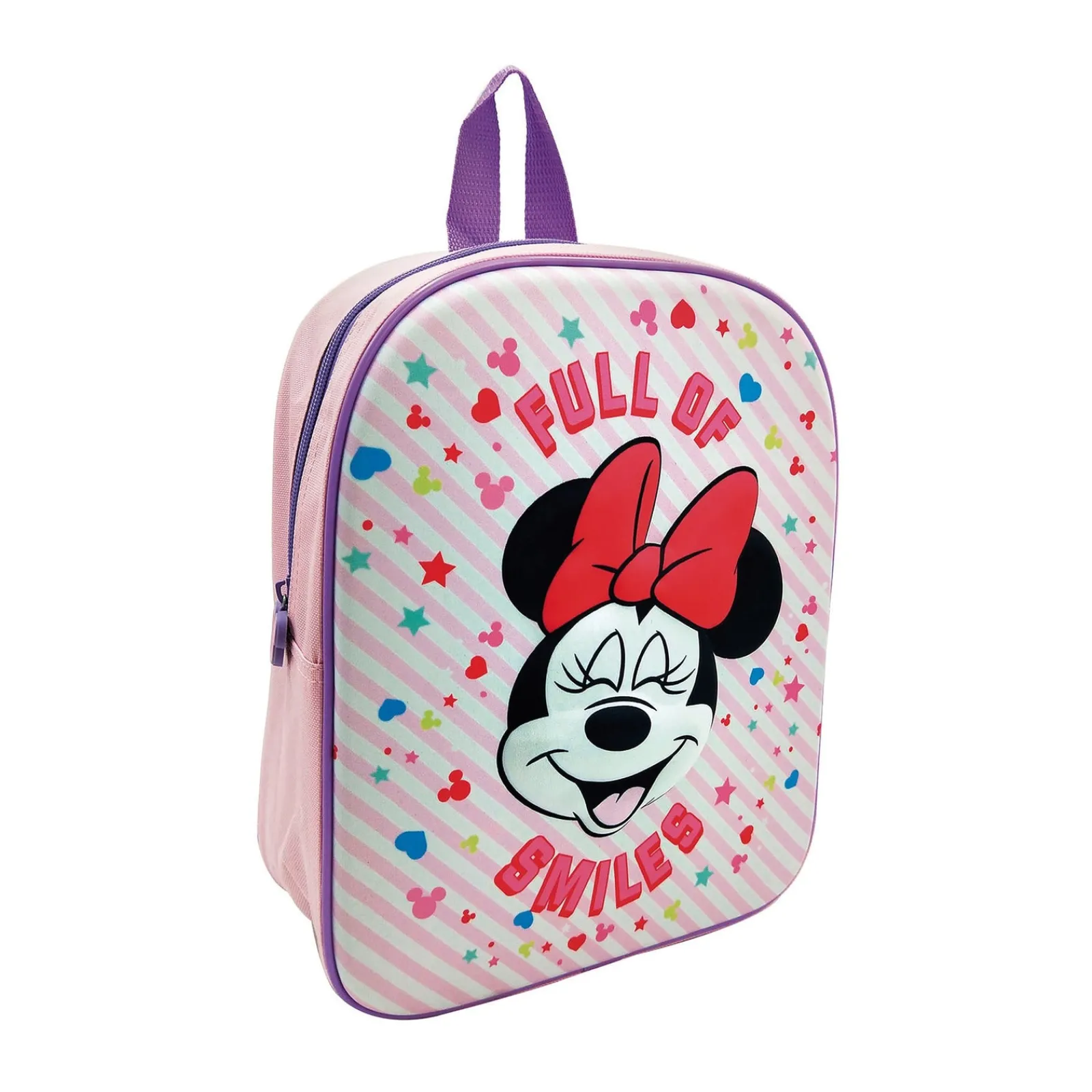 Mochila 3D com a Minnie, ideal para os fãs da personagem. Divertida e confortável, vai ser a companhia ideal para o dia a dia.