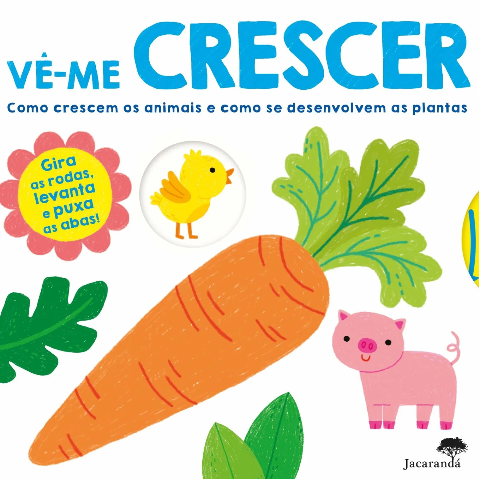 As crianças vão adorar girar as rodas, levantar e puxar as abas, enquanto aprendem como tudo acontece numa quinta:. do girino à rã. da semente à planta. da flor ao frutoPromove:- Competências de leitura- Aprendizagem sobre o mundo- Coordenação olho-mão