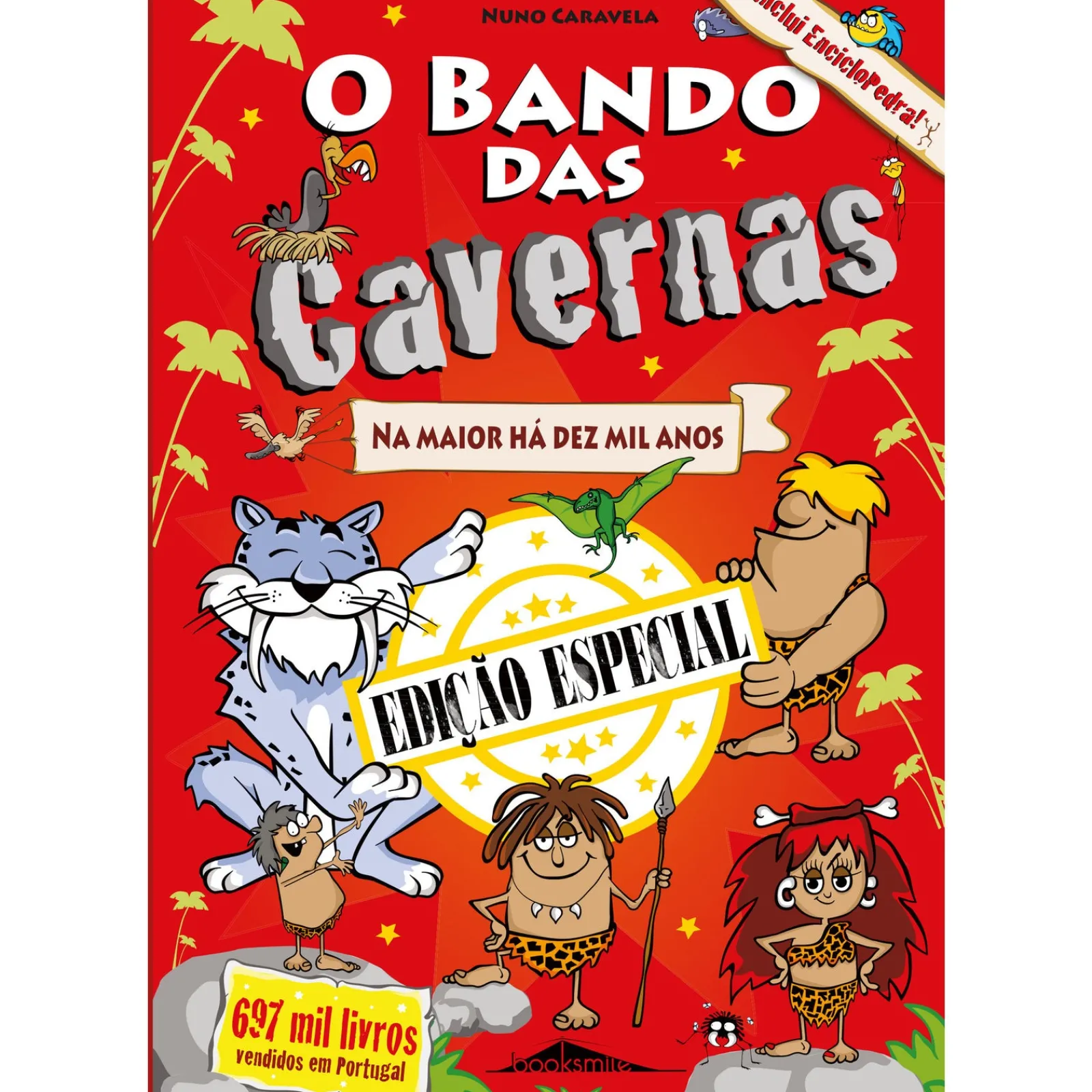 Uma edição super-especial, aumentada e em capa dura!Este livro, vindo dos confins do tempo, está repleto de aventuras e gargalhadas. Tudo por causa de um grupo muito especial de amigos: o Tocha, a Ruby, o Menir, o Kromeleque, o Tzick e o Sabre.Eles são o Bando das Cavernas!Vais divertir-te com as suas peripécias, enquanto eles viajam no mamute escolar, têm uma aula louca com o professor Pi, jogam futebol da Pré-História e vivem uma aventura alucinante no Vale dos Rochedos, com pinturas rupestres e vespas-falcão à mistura.Ah! E não percas o concerto de rock da Idade da Pedra, no fim de ano espetacular do grupo!Diverte-te a ler e… Junta-te ao Bando!