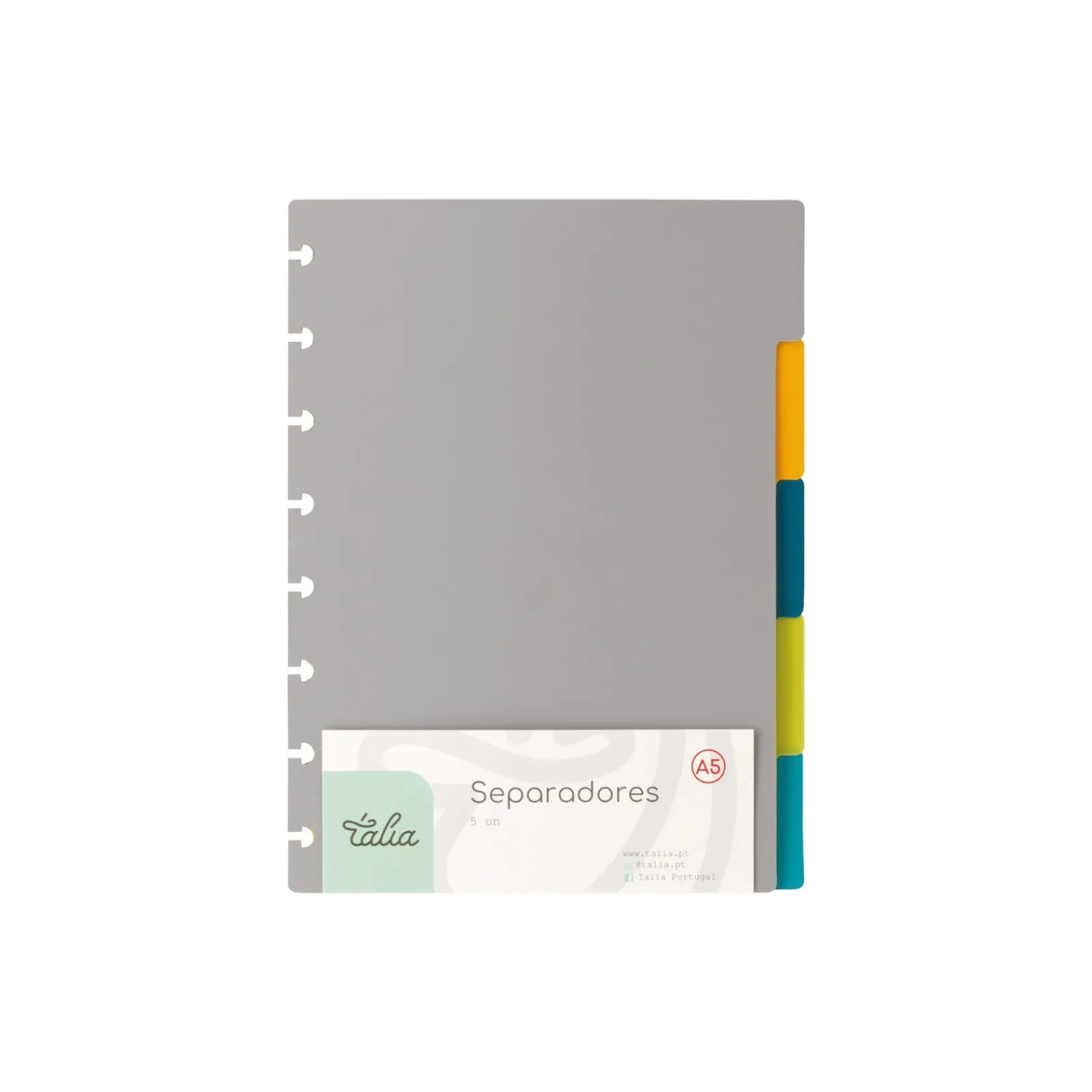 Conjunto de 5 separadores A5 multicor, para Caderno Smart, tornando a informação facilmente organizável em pastas de arquivo.