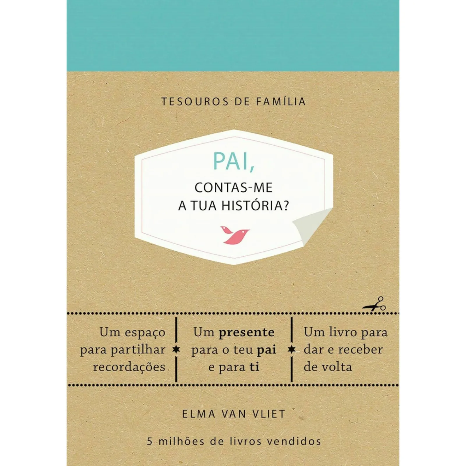 Elma van Vliet deu-se conta de que havia muitas coisas que não sabia sobre o seu pai – quem era o seu herói favorito, quais foram as melhores decisões que tomou na vida, o que sentiu quando soube que ia ter um filho…Assim, decidiu criar um caderno de perguntas para que o pai pudesse registar as suas memórias, contar as histórias divertidas e revelar os momentos da vida que mais o marcaram.Agora também vais poder saber mais sobre o teu pai e conhecer as recordações e as escolhas que o tornaram no homem especial que é hoje.Com espaço para o teu pai escrever, colar fotografias e incluir tudo o que desejar, este livro é um presente valioso.Afinal, os verdadeiros tesouros de família são as recordações que partilhamos com as pessoas que amamos.Normalmente, não devolvemos os presentes que recebemos, mas este livro é uma exceção à regra.A intenção é que a tua mãe o preencha e depois to devolva.