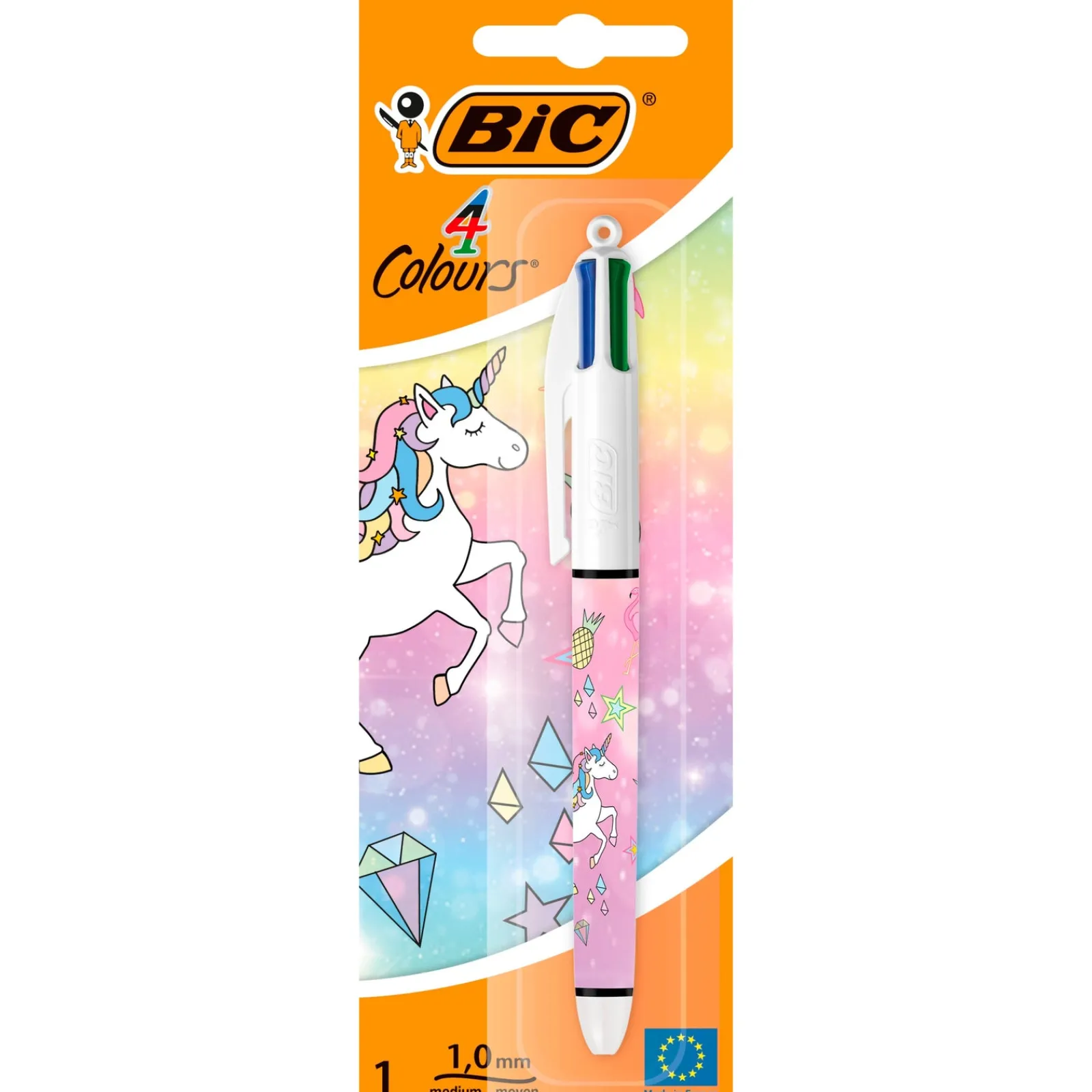 Esferográfica decorada com unicórnio, com 4 cores de tinta clássica (azul, vermelho, verde, e preto), cada uma com uma ponta média de 1mm adequada para uma grande variedade de tarefas de escrita. Ideal para casa, escola ou escritório.