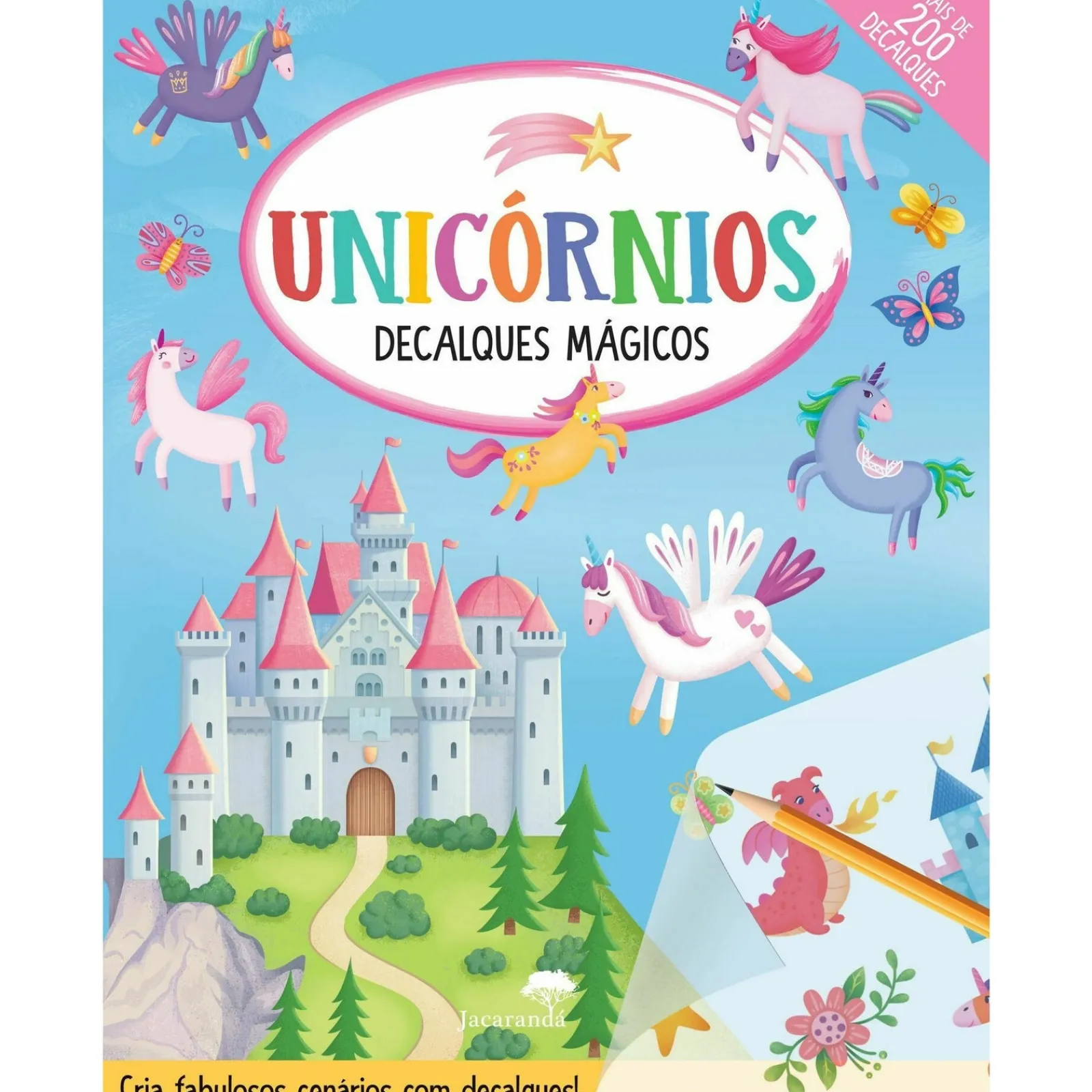 Entra no reino mágico dos unicórnios e conhece os seus amigos, os animais da floresta, as fadas e os dragões que lá vivem. Este livro tem mais de 200 decalques bem giros para completar cada imagem. Só precisas de um lápis ou de uma caneta para raspar os decalques. – Promove o treino da motricidade fina e concentração