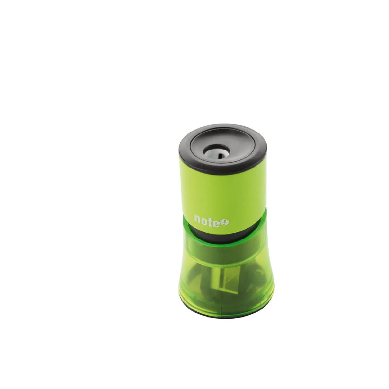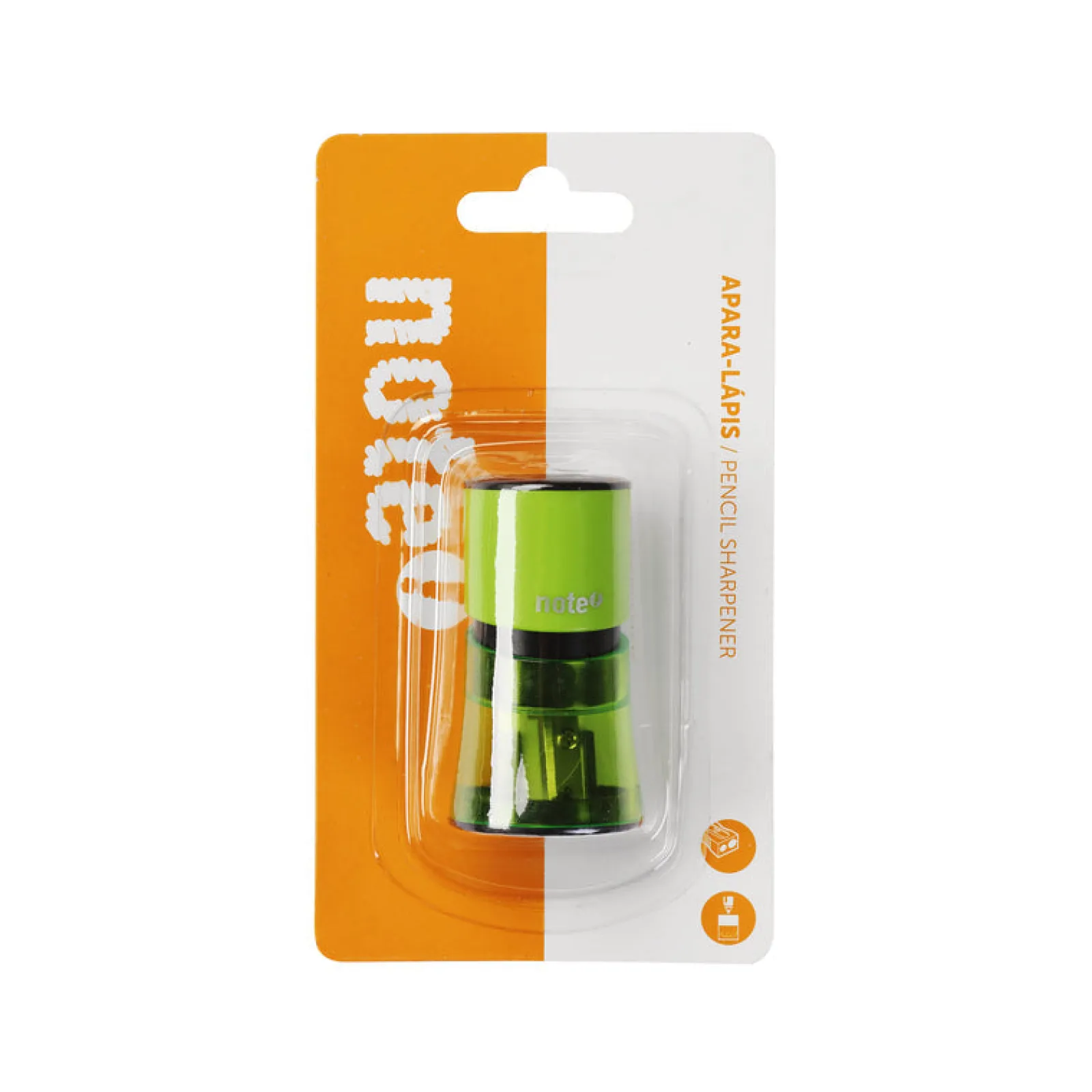 Afia com depósito plástico colorido transparente. Com 2 orifícios de tamanhos diferentes adequados para a maioria dos lápis, prático para utilização em âmbito escolar, profissional ou em casa.