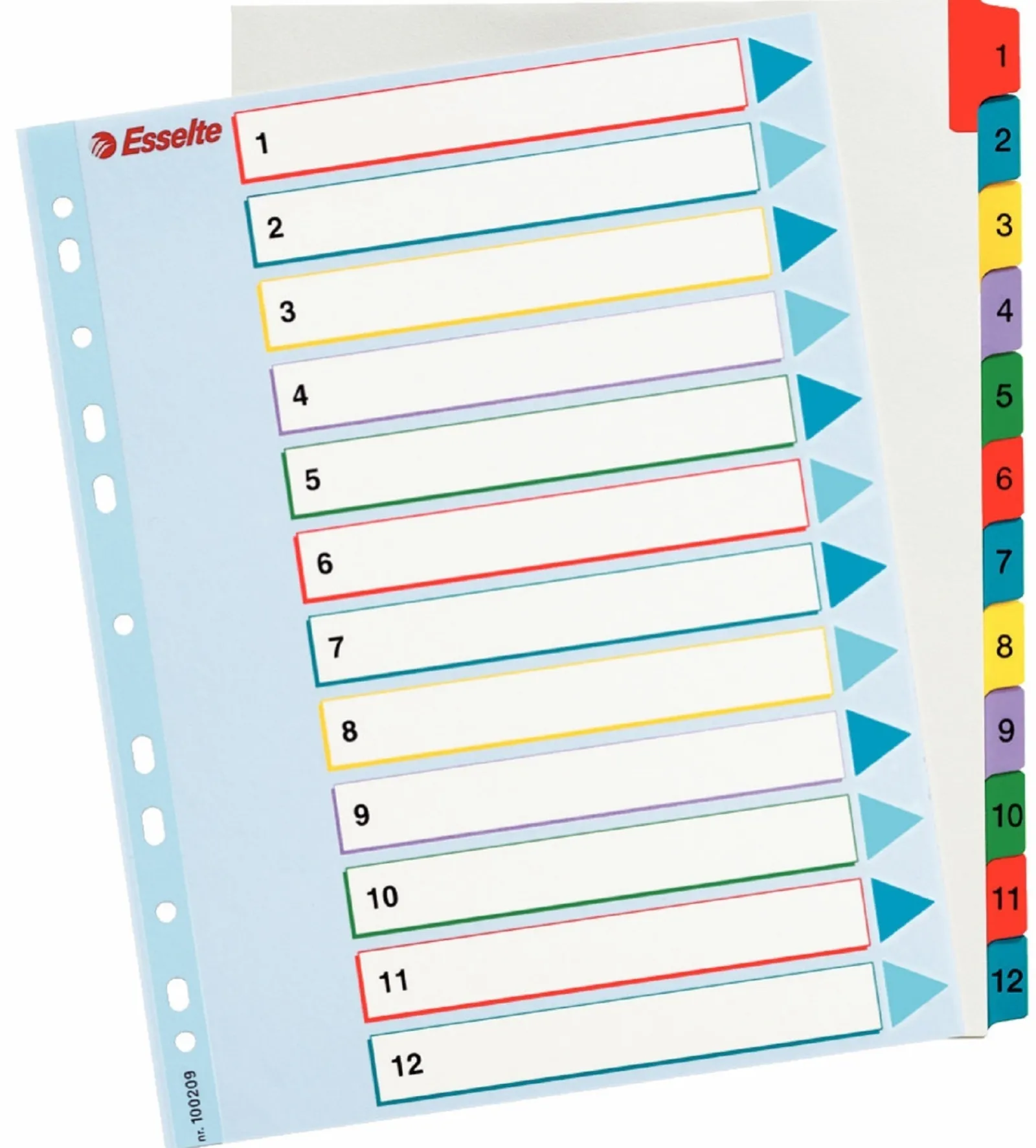 Conjunto de 12 separadores numéricos fabricados em cartolina mylar. Com folha frontal plastificada em ambos os lados para reescrever o conteúdo. Pestanas reforçadas. Cartão de 160 g. A4 Maxi. Multicor.
